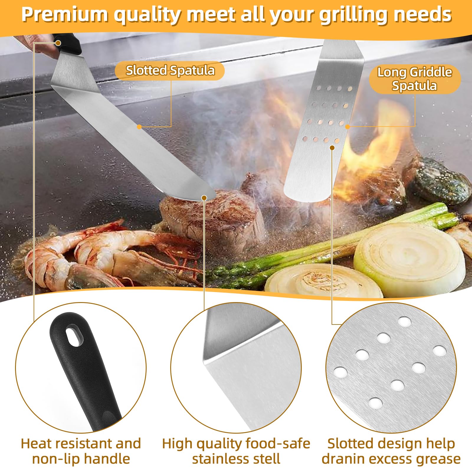 POLIGO 28-TEILIGES Grillplatten-Zubehör-Set, Flat Top Grillzubehör-Set