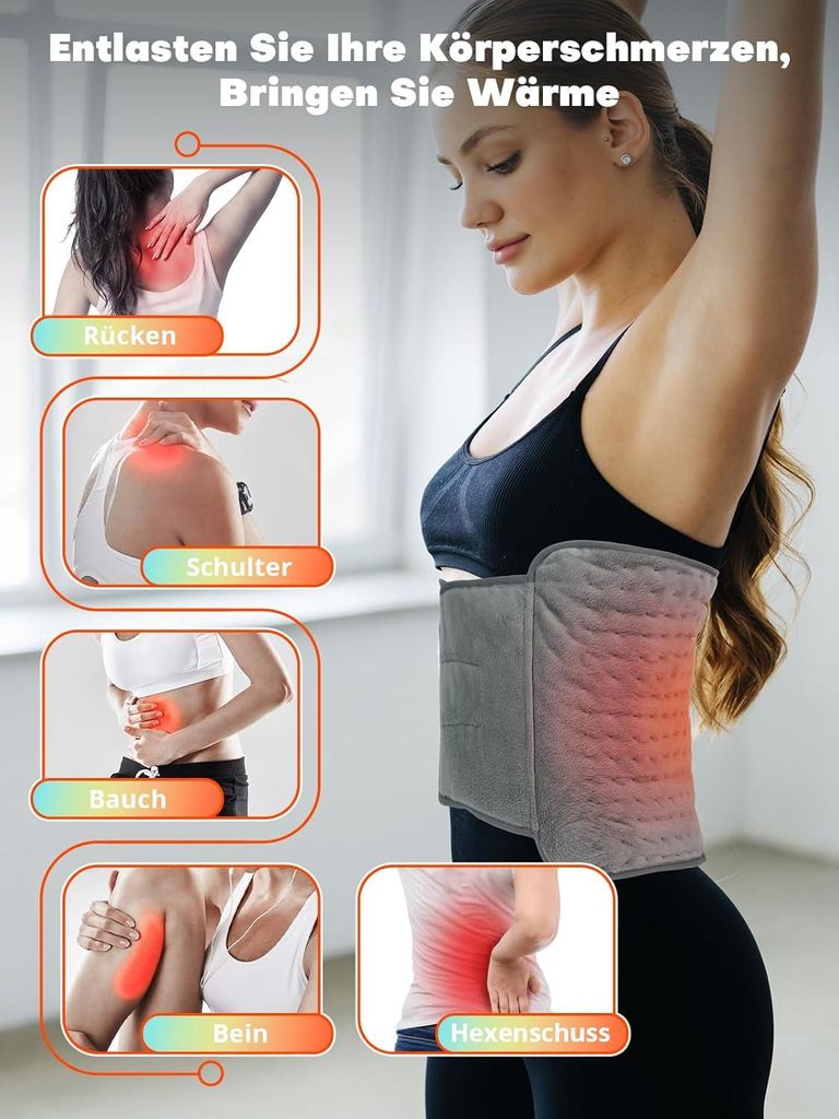 KESSER® Elektrisches Heizkissen für Rücken Schulter Nacken mit Abschaltautomatik 9 Heizstufen 89x65cm Wärmekissen mit Taillenriemen Rückenwärmer Elektrisch Heizdecke Waschbar Fernbedienung | - einfach besser einkaufen Es schaltet sich automatisch nach 90 Minuten aus. EVERY Heizkissen Elektrisches Wärmekissen Heizdecke für Schulter Rücken Dank des abnehmbaren Kabels ist das Mikrofaserband maschinenwaschbar SICHER UND FUNKTIONELL - Dieses Heizkissen ist 100% sicher: Die automatische Abschaltung nach 90 Minuten sorgt für mehr Sicherheit bei der Anwendung. ARS - AR4H03 Elektrisches Heizkissen Schnell wärmend Rücken Bauch Beine, Lennband, Elektrische Heizung in weicher Mikrofaser mit Klettverschluss THERAPEUTISCH - Entlasten und entspannen Sie Ihre Muskeln zu Hause mit m Ars-Heizkissen, m ialen Mittel gegen Verspannungen, die Ihnen ständig n Tag vermiesen Kissen & Polster und andere Wohntextilien günstig online kaufen bei Möbel & Garten. Das Heizband kann schnell 6 Heizstufen erreichen, die über den Digitalschalter ausgewählt werden können PRAKTISCH UND VIELSEITIG - Das elektrische Heizkissen von Ardes kann an viele Muskelpartien angepasst werden: ideal für Rücken, Bauch und Beine, aber auch für Nacken und Schultern. Das Ardes Lendenheizband wirkt entspannend und schmerzlindernd und liefert die notwendige therapeutische Wärme, um Muskelverspannungen in verschiedenen Körperbereichen zu lösen Warnhinweise Achtung: Das Heizkissen sollte nicht unbeaufsichtigt gelassen werden, um Verbrennungen zu vermeiden. Zusätzlich zu diesem Überhitzungsschutzsystem ist das Kabel abnehmbar. Produktbeschreibung Weiches Mikrofaser-Lendenband mit Abreißverschluss Ermöglicht es Ihnen, Schmerzen zu lindern und Muskeln zu dehnen. Leistung 100 W Automatische Abschaltung mit Timer bei 90 Minuten., Maschinenwaschbar, abnehmbares Kabel. Um das Heizkissen zu reinigen, können Sie das abnehmbare Kabel entfernen und das Mikrofaserband in der Waschmaschine waschen. Allgemeine Angaben Muskelentspannung und Schmerzlinderung Gebrauchsanweisung Das Heizkissen kann an viele Muskelpartien angepasst werden: ideal für Rücken, Bauch und Beine, aber auch für Nacken und Schultern. SILVERCREST® Bauch-Rücken-Heizkissen | Kaufen auf Ricardo Oft hilft Wärme am Besten ☀️☀️☀️ Ob Rücken, Nacken, Bauch, […]