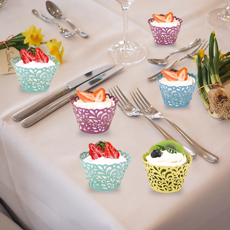 KOSTOO Cupcake-Förmchen, Wassertropfen, Künstlerisches Backen, Papier, Spitze, Lasergeschnitten, Backförmchen, Muffin Für Hochzeit, Party, Geburtstag, Dekoration, Himmelblau, 50 Stück