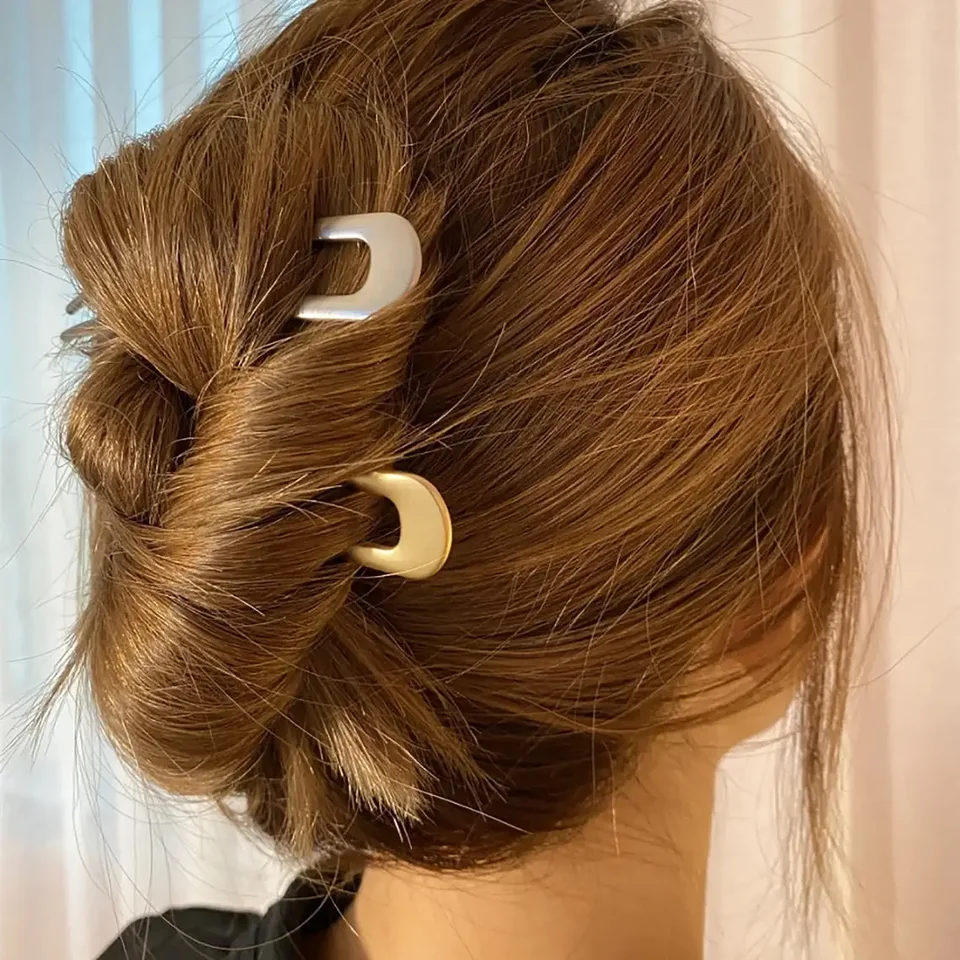 2 Stück Elegante U-förmige Haarnadeln Für Frauen - Große Metall