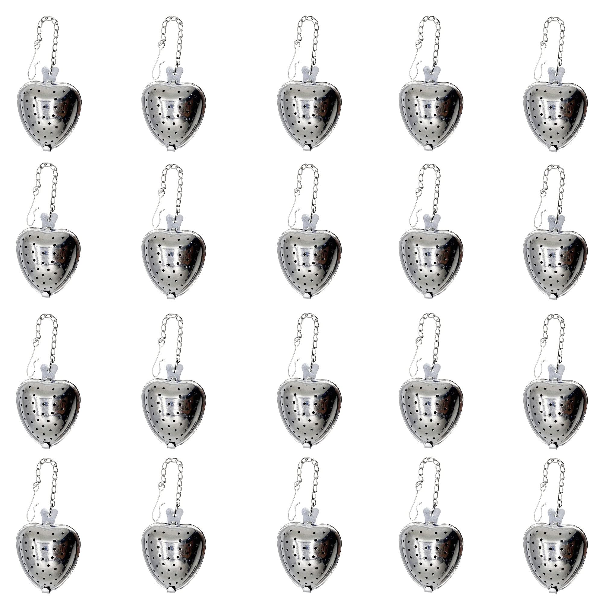 MIAO JIN 20 Stück Edelstahl Tee-Ei Mesh Herzförmiges Teesieb Mit Kette Löffel Zucker Mehlsieb Filter Tee Intervall Diffusor Für Lose Blätter, Gewürze, Gewürze