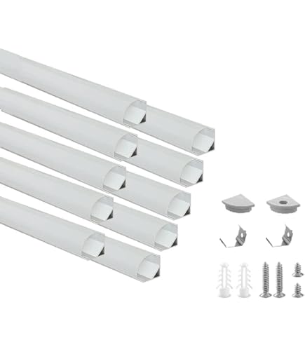 LIEFERUMFANG: 5x 2 Meter Aluminiumprofil inkl. MODERNES DESIGN: schlankes und modernes Design. Das Eck-Profil ist aus eloxiertem Aluminium gefertigt und die nach Wahl mitgelieferte Abdeckung lässt sich ganz einfach darin einklippsen. Mit diesem Profil lassen sich unsere LED Leisten platzsparend direkt auf das vorgesehene Objekt montieren Die Aluminium Eckprofile können nun einfach und fugenfrei angebracht werden und müssen nicht mehr Meter für Meter zusammengesetzt werden. Die Profile können mit einer herkömmlichen Handsäge gekürzt werden. Produktbild entweder mithilfe der beiliegenden Montageklammern befestigen, direkt verschrauben (ohne Klammern) oder mit einem Klebestreifen befestigen und schon haben Sie nicht nur einen Schutz und eine Wärmeableitende Aluminiumleiste für Ihre LED-Stripes sondern auch einen echten Blickfang in Ihrer Einrichtung. Die Montage der LED Aluleiste in 2m ist sehr einfach zu händeln. Ideal geeignet für Küchen, Kleiderschränke, als Arbeit- oder Dekobeleuchtung uvm. Verbinder für LED Alu Deckenprofile von Klus-Desig, 2,50 LED Eckprofil CORNER22 eloxiert L: 200cm - - simply plug and play!, 53,79 20x Befestigungsset und 10x Endkappen gem., Abbildung Alu Eckprofil Led Profi LED Profil Für LED Stripes - Serie Eckprofil Mini 11 (Alu-Profil 2M Aluminium Eckprofil Led Profil 2m ENDLICH: 2 Meter an einem Stück. Passende Clips und Endkappen können Sie sich auswählen. LED Aluschiene 2m für außen und innenDie LED Aluleisten I LED Eckschienen können im Gebäude oder außerhalb des Gebäudes angebracht werden.