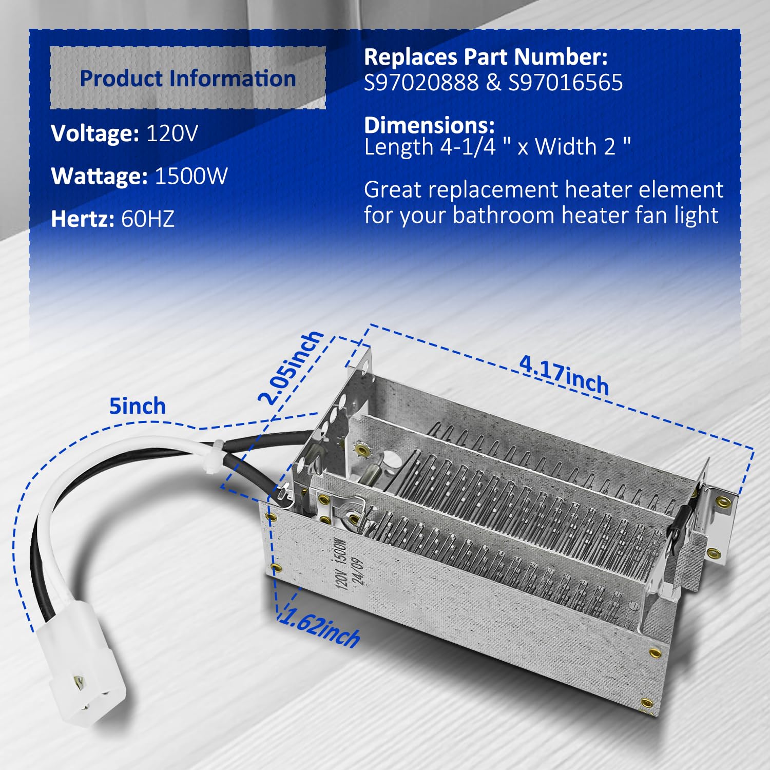 Leistungsstarke Leistung]: Dieses Heizelement verfügt über 1425 W Leistung bei 120 V und bietet eine effiziente und effektive Heizung für Ihren Raum. Funktioniert bei 60 Hz Frequenz für gleichmäßige Wärmeverteilung Hinweis: Dies ist ein Aftermarket-Ersatzteil. Wenn Sie nicht sicher sind, ob es zu Ihrem Modell passt, senden Sie uns bitte eine E-Mail, einschließlich Ihrer Modelle und Seriennummer. Brandneue Heizung Heizelement Ersatzteile 1 Stück Interne Leistung 1425w Hertz 60hz Hoch Fit Zuverlassig~p140628276 Heizelement-Ersatz Für Broan Und Für NuTone S97020888, Einfache Jeder Markenname dient ausschließlich zur Demonstration der Kompatibilität. Replaces for QTXN100HL, QTXN110HL, QTXGN100HL. Replaces for NuTone QTXN100HL, QTXN110HL, QTXGN100HL. Fits for Broan 100HL, 110HFL, QT110HL, QTX100HL, QTX110HL, 765HFL, 765HL. Fits for 100HL, 110HFL, QT110HL, QTX100HL, QTX110HL, 765HFL, 765HL