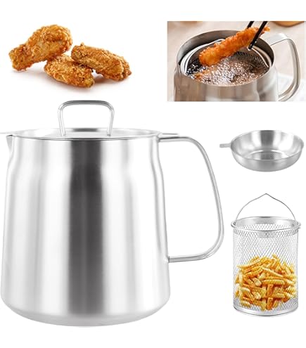 Leicht zu reinigen und zu pflegen: Die glatten Innen- und Außenflächen des Edelstahltopfs machen die Reinigung zum Kinderspiel, und seine spülmaschinenfeste Funktion trägt zu seinem Komfort bei Er eignet sich auch hervorragend zum Kochen, Kochen und Allzweckkochen und bietet Vielseitigkeit in Ihrer Küche Frittiertopf Induktion Ölfiltertopf Aus Edelstahl Mit Sieb Für Küche, 2L Ölfiltertank Mit Großem Fassungsvermögen Mit Filterdeckel Und Frittierkorb, Multifunktionaler Ölsiebtopf Zum Aufbewahren Von Bratöl, Kochen (A-2L Frittiertopf Mit Sieb Was Sie bekommen können: 1 x 2 l Edelstahl-Öltopf., 1 x Ölsiebkorb., Hinweis: 1., Bitte messen Sie Ihr Gerät, um sicherzustellen, dass es passt, bevor Sie eine Bestellung aufgeben!, 2., Bitte vermeiden Sie die Verwendung von rauen Schleiftüchern oder Metallkugeln, um diesen Artikel zu reinigen, da dies zu Schäden am Zubehör führen kann., 3., Reinigen Sie den Artikel nicht, solange er noch heiß ist. Langlebiges und nicht reaktives Material: Hergestellt aus hochwertigem Edelstahl, ist dieser Öltopf korrosionsbeständig, nicht reaktiv und frei von schädlichen Chemikalien, um sicherzustellen, dass Ihre Lebensmittel immer sicher und geschmackvoll sind - Material in Lebensmittelqualität: genießen Sie gesundes Kochen mit lebensmittelechten Materialien, und machen Sie sich keine Sorgen über gefährliche Chemikalien. Entdecken Sie den perfekten Begleiter für Ihre Küche mit unserem 2-Liter-Edelstahl-Öltopf, der entwickelt wurde, um Ihr Kocherlebnis zu verbessern und gleichzeitig Ihre Gesundheit und Bequemlichkeit zu priorisieren. Sichere Handhabung: Mit einer breiten Öffnung für einfaches Befüllen und Reinigen, zusammen mit einem ergonomischen Griff, der kühl bleibt, bietet dieser Öltopf auch bei der Handhabung von heißem Öl einen sicheren Halt und sorgt für Sicherheit und Benutzerfreundlichkeit Ölfilter - TR series - OMT Group - Partikel / Sieb / für Tanks Es filtert verbrauchtes Speiseöl., 2., speichert sauberes Öl für zukünftige Verwendung., 3., Dient als langlebiger Topf zum Kochen. 【Effizientes Küchenwerkzeug】Der Ölfiltertopf aus Edelstahl vereint drei wesentliche Funktionen in einem. Adler Dampfbügelesen AD 5032, 3000,00 W, Multfunktonales... Verwenden Sie ihn zum Kochen von Wasser, zum Kochen von Saucen oder als Allzwecktopf für alltägliche Mahlzeiten., Produktmerkmale: Material: Edelstahl., Fassungsvermögen: 2 l., Farbe: Silber. Ölfiltertopf aus Edelstahl – falkeco - Breite Anwendung - Seine Vielseitigkeit macht es ideal für eine Vielzahl von Kochaufgaben.