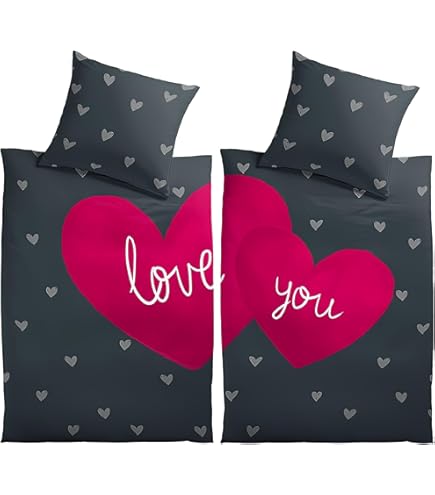 Leonado Vicenti Bettwäsche 4 Tlg Bettwäsche Microfaser 135x200 Cm Partnerbettwaesche Love Microfaser 4 Teilig Mit Herzen Und Schriftzuege S022i0a8