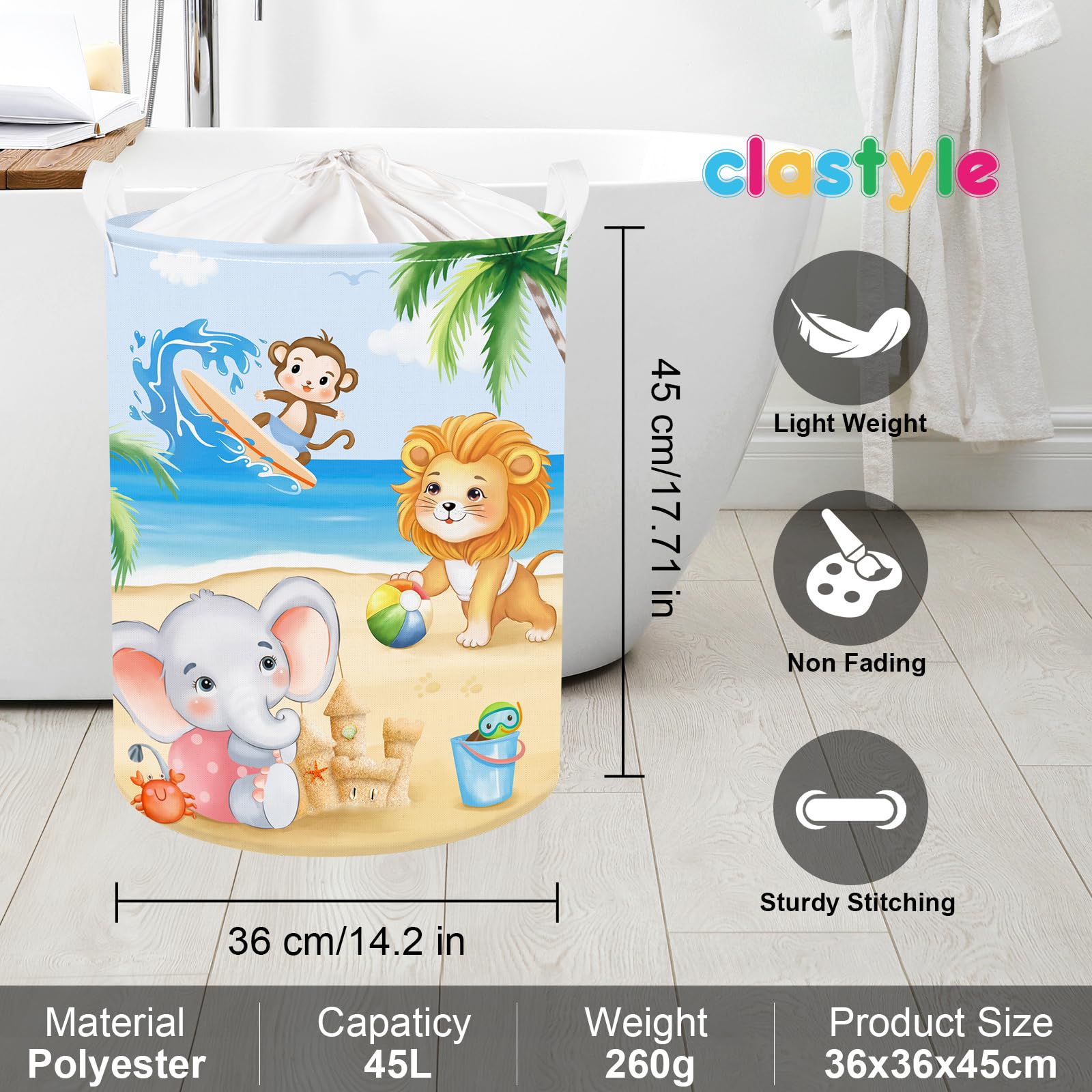Clastyle Sommer Strand Kinder Wäschekorb Mit Henkel Palmenbaum Kleidung Spielzeug Aufbewahrungskorb Mädchen Frauen Aufbewahrungsbox Für Babyzimmer Bad, Tier, 36 * 45 Cm