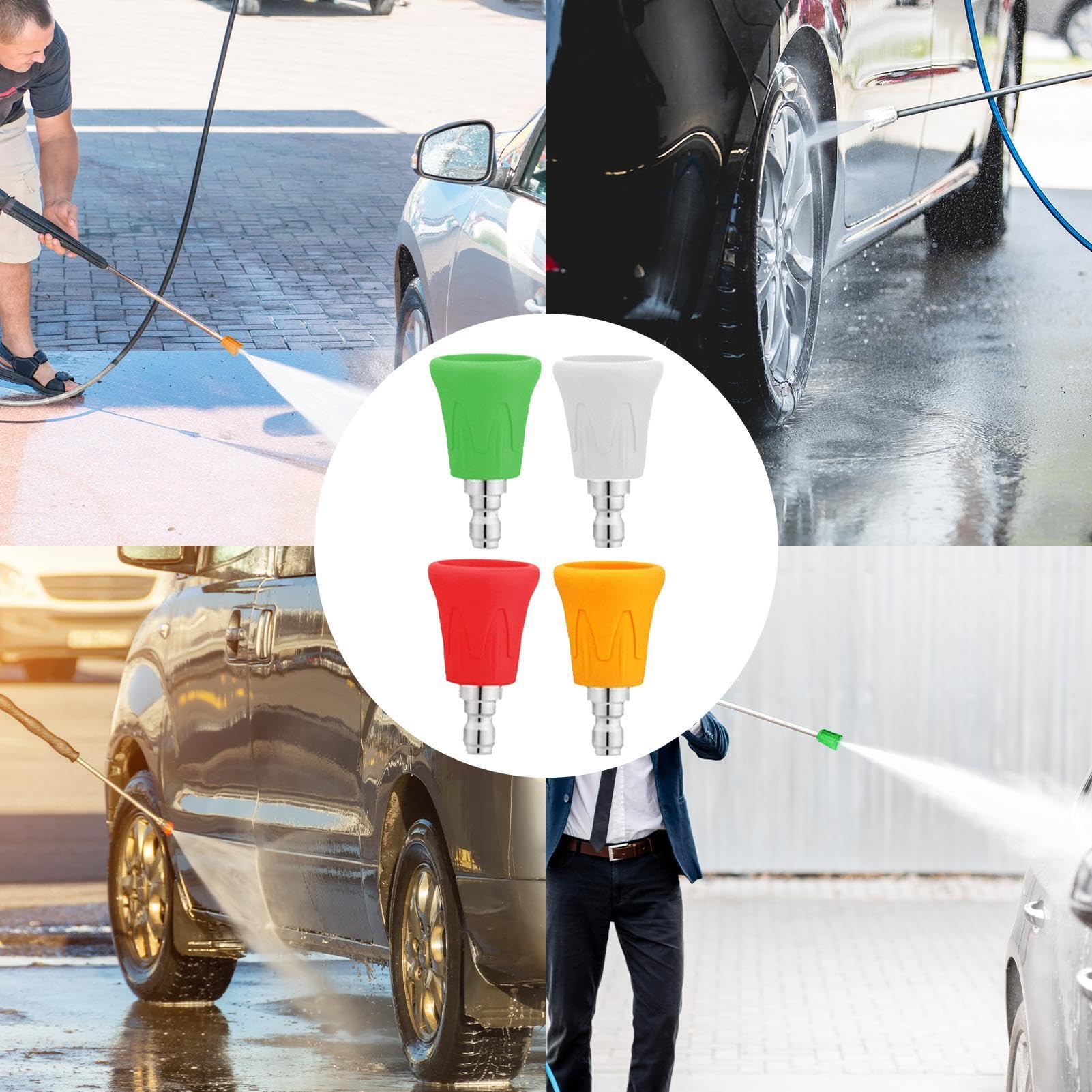 Sie sind so gebaut, dass sie den Strapazen schwerer Aufgaben standhalten und im Laufe der Zeit zuverlässige Leistung bieten. Mit einer breiten Palette von Anwendungen sind unsere Hochdruckreiniger-Düsen perfekt für die Reinigung einer von Oberflächen wie Einfahrten, Gehwegen, Decks, Terrassen, Autos, Booten und mehr. Technische Daten: Produktname: Hochdruckreiniger-Düse., Material: Gummi, Edelstahl., Kompatibilität: 1/10., 2 cm Quick Connect Öffnung 3,0 oder 4,0 Farbe: Rot, Orange, Grün, Weiß, Schwarz. 【Einfache Installation】: Das benutzerfreundliche Design des Hochdruckreiniger-Düsenschutzes ermöglicht eine einfache Installation auf Ihrem Hochdruckreiniger, ohne dass zusätzliche Werkzeuge oder komplizierte Verfahren erforderlich sind. VEVOR Teleskoplanze für Hochdruckreiniger, Teleskopstrahlrohr... Die Düsen enthalten 0°, 15°, 25°, 40° und eine Seifendüse für Waschmittel. Sie können einfach angebracht und mit verschiedenen Maschinen verwendet werden, was Vielseitigkeit und Komfort gewährleistet. Verschiedene Sprühmuster ermöglichen es Ihnen, leichte bis schwere Reinigungsaufgaben mit Leichtigkeit zu bewältigen. Wir bitten um Ihr Verständnis., 2., Aufgrund der manuellen Messung gibt es eine Toleranz bei der Produktgröße. Stückzahl 5 (0°, 15°, 25°, 40°, und eine Seifendüse) Lieferumfang: 5 x Hochdruckreiniger-Düsen (0°, 15°, 25°, 40° und eine Seifendüse)., Hinweise: 1., Aufgrund der Lichteffekte und Aufnahmewinkel kann es zu Farbabweichungen im Produkt kommen. Kärcher Düse Hochdruckreiniger 5pcs Druckscheibe -Düsenschutz Edelstahl -Stahlscheibe -Düsendüsen Hochdruckreiniger Düsen Langlebig und rostfrei: Diese Düsenspitzen aus Edelstahl sorgen für Langlebigkeit und Langlebigkeit. Enthaltene Düsen sind 0°, 15°, 25°, 40° und eine Seifendüse zum Waschmittelauftrag. Passend für: die meisten Standard-Hochdruckreinigerstäbe. 5 VIELSEITIGE DÜSEN: Dieses Set enthält fünf Hochdruckreiniger-Düsenspitzen mit unterschiedlichen Sprühmustern, Sie für Reinigungsaufgabe die perfekte Düse auswählen können. Die mitgelieferten Düsen sind 0°, 15°, 25°, 40° und eine Seifendüse zum Auftragen von Reinigungsmitteln PRATYAHARA 5 In 1 DüSe Hochdruckreiniger 0° 15° 25° 40° 65° DüSe i