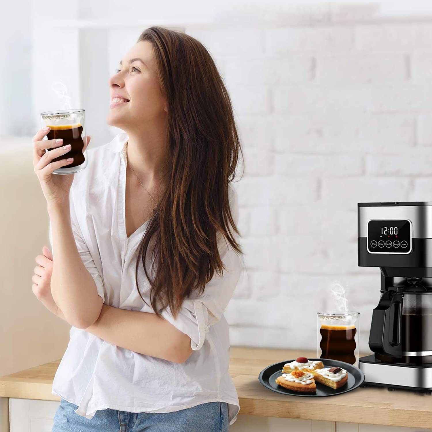 ღ[Hochwertige Materialien]Der Latte Macchiato Gläser besteht aus hochwertigem Borosilikatglas, das leicht, aber langlebig, verschleißfest, nicht leicht zu brechen ist und Temperaturen von -20° bis +120° standhält. ღ[Doppelschichtdesign]Unsere Latte Macchiato Gläser sind doppellagig und haben eine wärmeisolierende Wirkung, die Ihre Hände vor heißen und kalten Temperaturen... Die Cocktailgläser sind ideal für jeden Anlass, ist es in Privathäusern, Cafés, Dessertläden, Bars, Clubs, Hotels und Restaurants sehr beliebt. Ob es eine Familien und Freundestreffen oder ein Weihnachten, Valentinstag, Muttertag, Jubiläen, Hochzeiten, Junggesellenabschiede, Geburtstage und Einweihungsgeschenke, Kaffeeliebhaber oder anderes Festival, unsere thermo gläser doppelwandig sehr gut als Geschenk geeignet. 【Perfektes Geschenk】Unsere Kaffeetassen Einzigartiger spiralförmig Stil mit europäischem Retro-Geschmack, sehr praktisch und einfach zu verstauen. Egal, ob Sie einen ruhigen Moment zu Hause genießen oder an einem geselligen Treffen teilnehmen, diese cappuccino Kaffeetasse ist eine tolle Ergänzung und perfekt für Sie! Latte Macchiato Glas Hersteller Farbe Doppelwandige Gläser It Griff Und Deckel (350l), Candiicap Cappuccino Gläser DELONGHI Thermoglas 2erSet DLSC312 Latte Macchiato Gläser Transparent im Onlineshop von kaufen. Jetzt bequem online bestellen und vermeidet die Bildung von Kondenswasser auf dem Getränkebecher beim Laden von kalten Getränken vermeiden. Aus einem einfachen Kaffee wird durch ein ästhetisches Erlebnis, was Ihnen das doppelte Vergnügen von Sicht und Geschmack bringt. 【Doppelwandige Kaffeegläser】 Die Doppelwand und das anmutig Spiralförmig geschwungene Design scheint das Getränk im Glas zu schweben. Die Hitzebeständigkeit von Kaffeebechern macht sie ideal für Heißgetränke wie Espresso, Latte Macchiato und mehr. 【Isolierung Design 】Die Cappuccino Gläser verwendung des doppelglas-Design, sorgt für eine hervorragende Isolierung, wodurch Ihr Kaffee länger heiß bleibt, ohne dass Sie Ihre Hände verbrühen. Doppelwandige Gläser Latte Macchiato Cappuccino Tassen 200 ml im 2er-Set, Thermoglas aus Borosilikatglas, Espressotassen, Kaffeebecher, Trinkgläser, Cappuccino-Tassen, Eisbecher, Doppelglas Kaffeegläser mit 2 Löffeln und 2 Untersetzern Doppelwandige Design Durch die zwei Glasschichten haben die Gläser einen Isolierungseffekt, und kondensationsfrei. Besonderer Look Das wellenförmige Design verleiht den Gläsern eine ansprechende Optik und sorgt für gute Stimmung, wenn man darin seine Getränke genießt. Leicht zu reinige Das spezielle Design mit breiter Öffnung macht die schaumigen Gläser leicht zu reinigen. Latte-macchiato-Gläser online kaufen Sehen Sie sich das aktuelle 2er Set Latte Macchiato Gläser, 2er Set Espresso Gläser, 2er Set Caffè Crema Gläser angebote bei Tchibo im neuesten prospekt an.