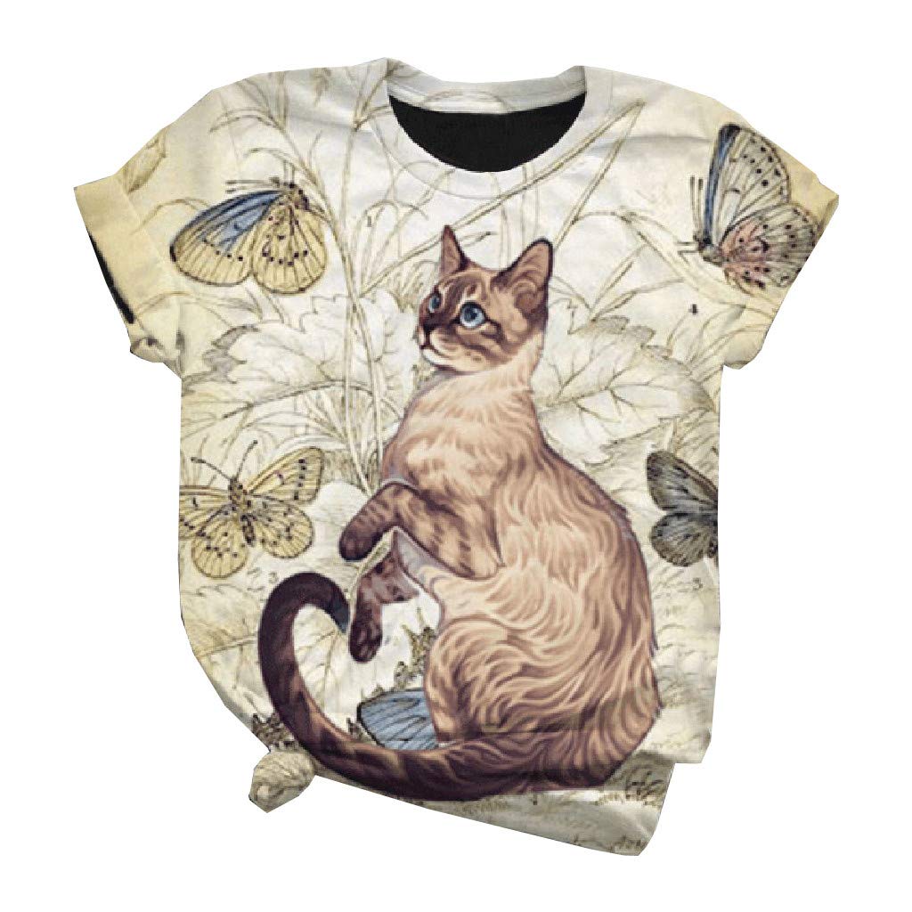 Women - Tops - T-shirts: Damen 3D Cat Farbe T-Shirt Katze Grafik 3D Bedruckt Rundhalsausschnitt Grundlegend Vintage Oberteile Blau Weiß Schwarz / 3D-Druck (15.54 EUR