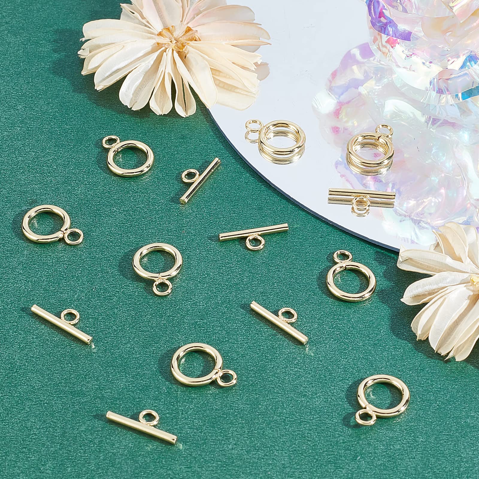 Beebeecraft 15 Sets 18 Karat Vergoldete Knebel Schmuckverschlüsse Verbindungsstücke Runde Ring Knebel T Stab Verschlüsse Für Halsketten Armband Ohrring Herstellung, 15x12 Mm