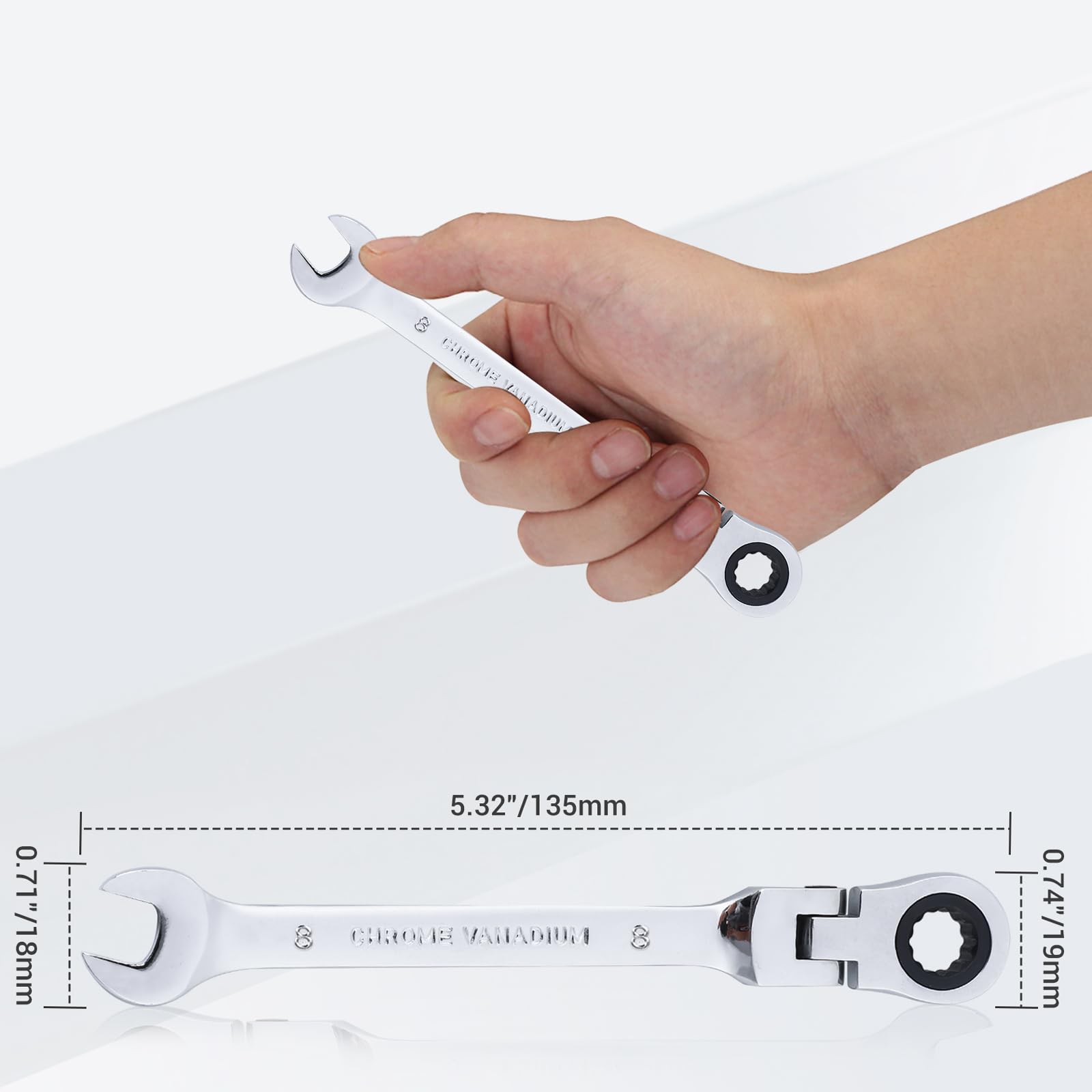 Anwangda Ratschenschlüssel, 8 Mm, 180 ° Verstellbar, Karbonstahl