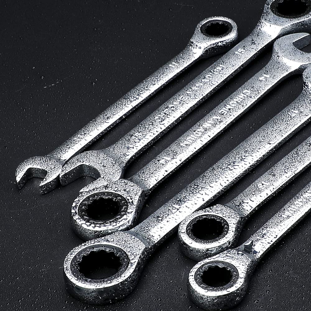 Ratschenring-Maulschlüssel-Satz - 12-teilig - Chrom-Vanadium-Stahl - SW 8 Bis 19 Mm