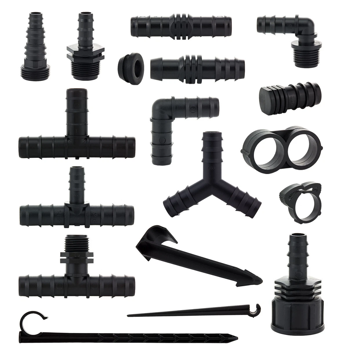 Modell: PE16 Winkelverbinder Durchmesser: 16 mm. Ein praktischer Anschluss für Wasserrohrverbindungen. VIELSEITIGE ANWENDUNGEN – Ideal für den Einsatz mit Hochbeeten, in Wohnhäusern, auf Bauernhöfen, in städtischen Grünflächen, in Gewächshäusern, Gemüsegewächshäusern und für landwirtschaftliche Bewässerungsanwendungen Merkmale: Langlebiges T-Stück mit Widerhaken, passend für Schläuche mit 16 mm Innendurchmesser. Ersatzbolzen – Hochwertige Bolzen für sichere und dauerhafte Verbindungen Ideal für Landwirtschaft, Rasen, Gartensprinkler Bewässerungstropfen., Spezifikation: Material: Polyethylen., Farbe: Schwarz. Geeignet für: Gewächshäuser, Gemüseschuppen, Garten, Rasen, Sprinkler-Zubehör., Größe: ca. T Stück Bewässerung Zuverlässige Steckverbinder Mit Widerhaken Für Hausgärten Und 16mm Schlauchverbinder Lieferumfang: 20 x Tropfwinkel-Verbindungsstücke. Langlebiges T-Stück mit Widerhaken, passend für Schläuche mit 16 mm Innendurchmesser. Ideal für Landwirtschaft, Rasen, Gartensprinkler Bewässerungstropfen