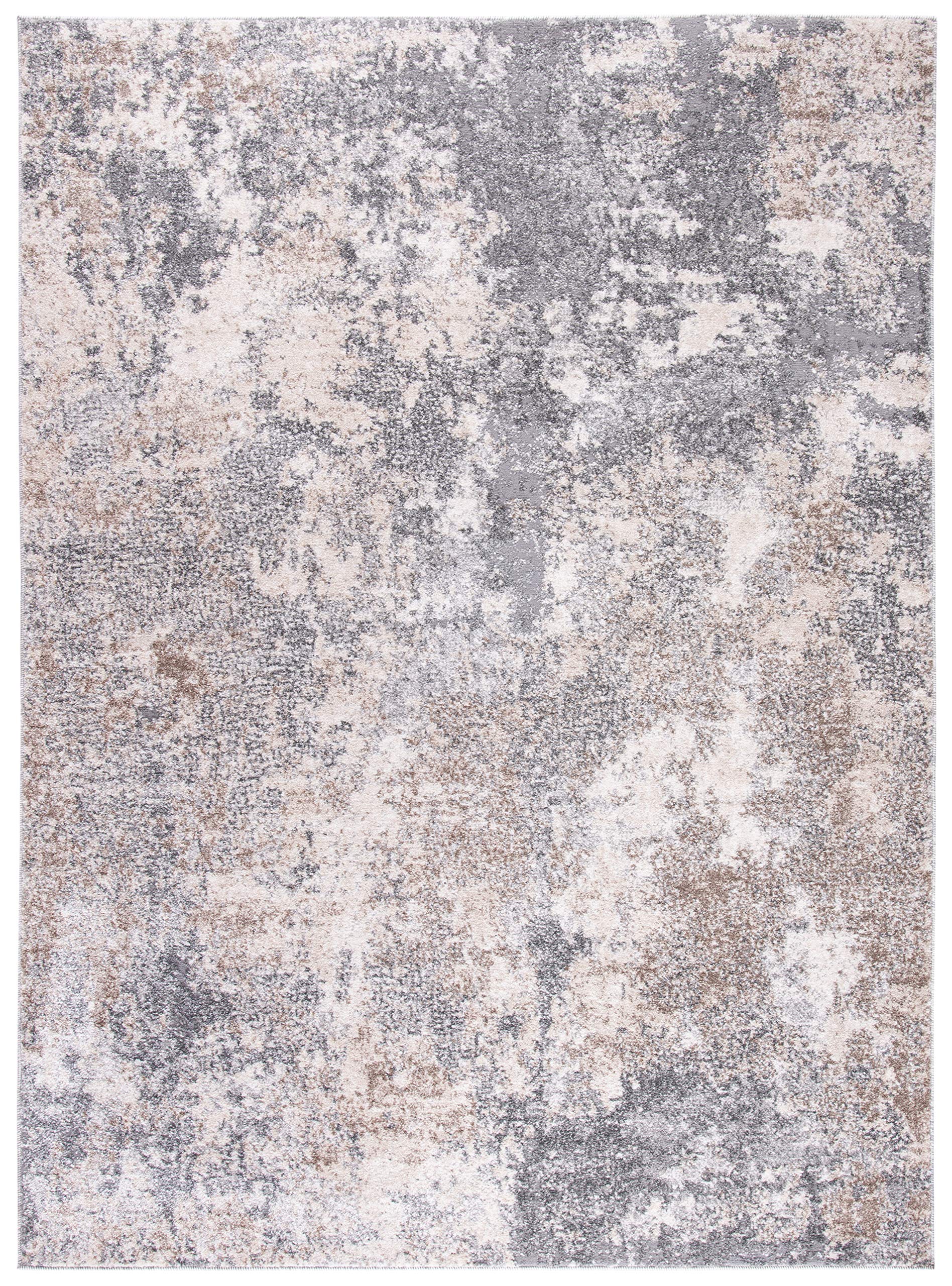 SAFAVIEH Zeitgenössische Teppich Für Wohnzimmer, Esszimmer, Schlafzimmer - Aston Collection, Kurzer Flor, Hellgrau Und Grau, 91 X 152 Cm