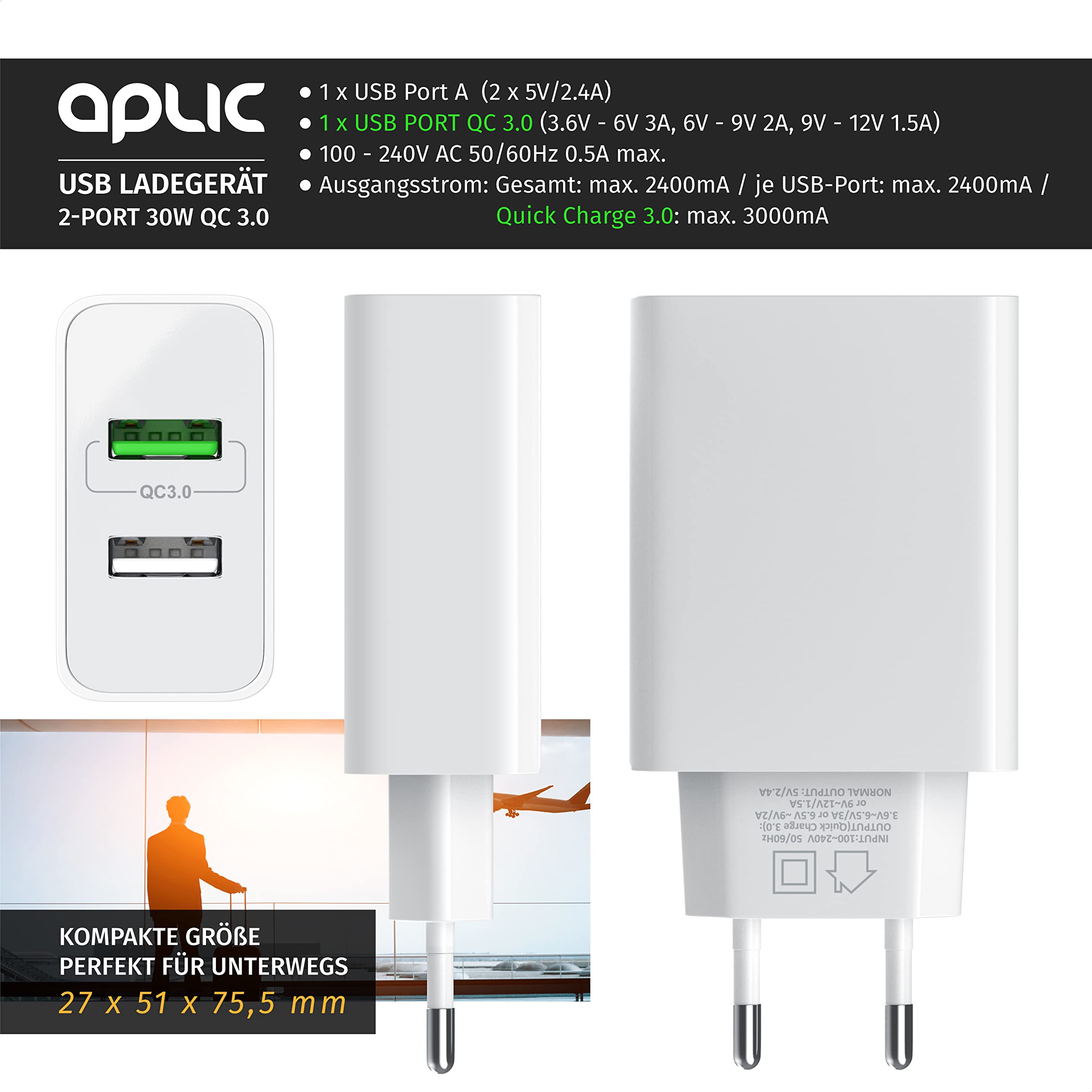 Usb C Netzteil CSL - USB Ladegerät 18W Quick Charge 3.0 - Netzteil Mit Schnellladefunktion - Smart Charge Solid Charge Intelligentes Laden - Geeignet Für Handys Smartphones Navis Tablets UVM. - Schwarz Akku Ladegerät Nutzen Sie die effiziente Power Boost Auflade-Technologie und greifen Sie ab sofort auf eine Turbo-Ladegeschwindigkeit zurück! Hinweis zur Kompatibilität mit Apple-Geräten: Das QC-Schnellladegerät ist für QC 3., 0-Geräte geeignet und abwärtskompatibel zu QC 1., 0+QC 2., 0., Beachten Sie, dass Ihre Geräte QC unterstützten müssen, um den Ladevorgang zu beschleunigen. Apple-Geräte unterstützen keine Quick Charge-Schnellladung, sondern nur eine Standard-USB-Ladung. Anderenfalls bleibt ein Geschwindigkeitsvorteil aus. 3000mA | Standby-Verbrauch: weniger als 0,1W | Schutzklasse: 2 | maximale Sicherheit: vollständiger Schutz gegen Überspannung, Überladung und Überhitzung (Geräte können sicher und schnell aufgeladen werden) Reise Halloween Ergänzung wieviel ampere handy laden Dessert mähen Oberst | Stabile Ausgangsspannung durch Solid Charge: Die Solid Charge-Technologie sorgt für eine stabile Ausgangspannung aufgrund hochwertiger und selbstregelnder Komponenten. 2400mA / je USB-Anschluss: max., 2400mA / Quick Charge 3., 0: max. Anschlüsse: 2x USB Port A - Female (2 x 5V/2,4A insgesamt), 1 x QC 3., 0 Port (3,6V-6V 3A, 6V-9V 2A, 9V-12V 1,5A) | 100-240V AC 50/60Hz 0,5A max., | Ausgangsstrom: Gesamt: max. ): geeignet für Asus: ROG Phone 7, ZenFone 10; Gigaset: GS5, GX6 Pro; Google: Pixel 7 / 8; HTC: Desire 22, 23; Honor: 90, Magic5; Motorola: Edge 40, G60, G84; Nokia; OnePlus: 11, 12; Oppo: Reno 11, Find X6, X7; Realme: 11, 12, GT 5; Samsung: Z Flip5, Z Fold5, Galaxy S22, S23, S24; Sony: Xperia 5V, 10V; Vivo: X90, X100; Xiaomi: 13, 14, Redmi Note 12, 13; Apple iPhone mit Standardladung Mit der kräftigen Ladepower des Aplic 2-Port Quick Charge 3.0 Ladegerätes können Sie QC-fähige, mobile Endgeräte flott auftanken: Handys, Smartphones und Tablets bedanken sich beim Einsatz des Quick Charge Ladegeräts mit reduzierten Standzeiten Schnellere Ladeprozesse: Die besonders effiziente QC 3., 0-Technologie lädt Smartphones, Tablets und andere USB-Geräte bis zu 4x schneller als ein Standardladegerät auf. Apple-Geräte unterstützen keine Quick Charge-Schnellladung, sondern nur eine Standard-USB-Ladung. Hinweis zur Kompatibilität mit Apple-Geräten: Das QC-Schnellladegerät ist für QC 3.0-Geräte geeignet und abwärtskompatibel zu QC 1.0+QC 2.0.Beachten Sie, dass Ihre Geräte QC unterstützten müssen, um den Ladevorgang zu beschleunigen. Quick-Charging Schnellladefunktion - Smart Charge intelligentes Laden - geeignet für Handys Smartphones Navis Tablets UVM. - schwarz bei . Große Auswahl an Netzteile in Elektronik & Foto zu günstigen Preisen