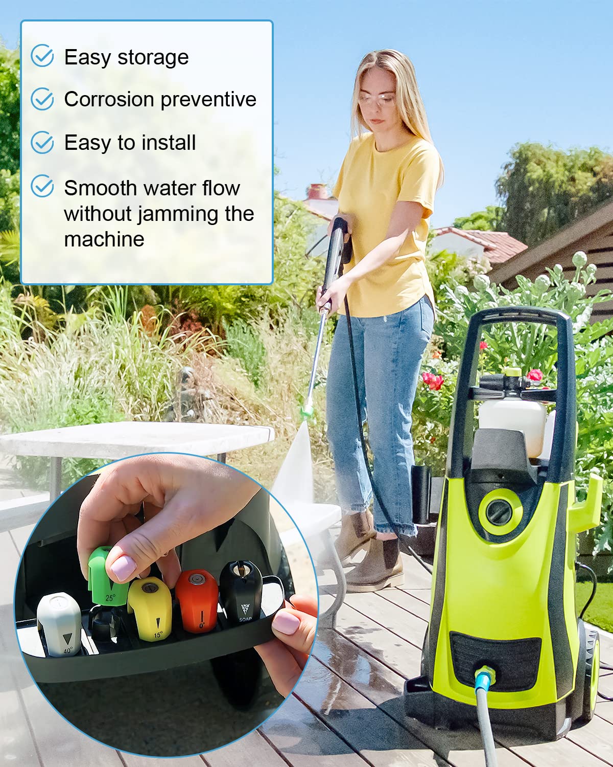 After-Sales: Bietet nicht nur hochwertige Hochdruckreiniger-Düsen, sondern bietet auch hervorragenden Kundenservice. Es lohnt sich, darauf zu achten, dass die Düse nicht auf das strapazierfähige Material trifft: Schnellverbindungssprühspitzen aus strapazierfähigem ABS-Kunststoff und Edelstahl. Hochdruckreiniger-Spitzenset kann die Unterseite eines Mähdecks, Dachrinnen, Gasgrill, Fahrzeug, Radbrunnen, Bewässerungsgarten und verschiedene Sprühwinkel reinigen ermöglicht es Ihnen, schwer zugängliche Stellen schnell und einfach zu reinigen. Das Düsenspitzen-Set beinhaltet: 1 x rote Edelstahl-Düsenspitze (0 Grad), 1 x gelbe Edelstahl-Düsenspitze (15 Grad), 1 x grüne Edelstahl-Düsenspitze (25 Grad), 1 x weiße Edelstahl-Düsenspitze (40 Grad), 1 x Messing-Seifendüsenspitze (65 Grad). Effizient: Hochdruckreiniger-Zubehör (0, 15, 25, 40) in einer Reihe von Sprühmustern von Punktstrahl bis Fächerspray, macht leichte Arbeit von Schimmel, Fett, Öl, Teer, Schlamm, Rost und mehr. International products have separate terms, are sold from abroad and may differ from local products, including fit, age ratings, and language of product, labeling or instructions. Auch passend für Sun Joe SPX3000, SPX3001, SPX3200, SPX 3500, SPX4000, SPX2003, SPX 2598, SPX2688, Sun Joe Hochdruckreiniger-Düsen, Sun Joe Hochdruckreiniger-Zubehör, Sun Joe Hochdruckreiniger-Aufsätze Dieses Set mit 5 Schnellverbindungsdüsen ist speziell für die Verwendung mit der Sun JoePressure Joe SPX 3000 Serie konzipiert. Passend für SPX 3000 Serie + Universal-Hochdruckreiniger Hochdruckreiniger Zubehör Schnellanschluss-Spritzdüsen-Set Für Universal-Hochdruckreiniger Hochdruckreiniger Düsen Langlebiges Material: Einfach an Hochdruckreiniger oder anderes Hochdruckreiniger-Zubehör befestigen. 8X HOCHDRUCKREINIGER DÜSENSPITZEN Set Standard 1/4" Schnellverschlussstecker - EUR 14,55.ZU VERKAUFEN! Features: 1.Material:Made of durable plastic.2.Pressure washer nozzle orifice size 2.5.3.Working Pressure of Nozzle is up to 4000 PSI (2.5 GPM).4.Holds 7 PCS nozzles with standard 1/4"" quick connect plug.5.7 Nozzle Tips have different angle. Hochdruckreiniger-Zubehörset, 7 Hochdruckreiniger-Düsenspitzen Ersatz für Düse Set kann die Unterseite eines Mähdecks, Dachrinnen, Gasgrills, Fahrzeug, Radkästen, Gartenbewässerung reinigen, und verschiedene Sprühwinkel ermöglichen es Ihnen, schwer zugängliche Stellen schnell und einfach zu reinigen