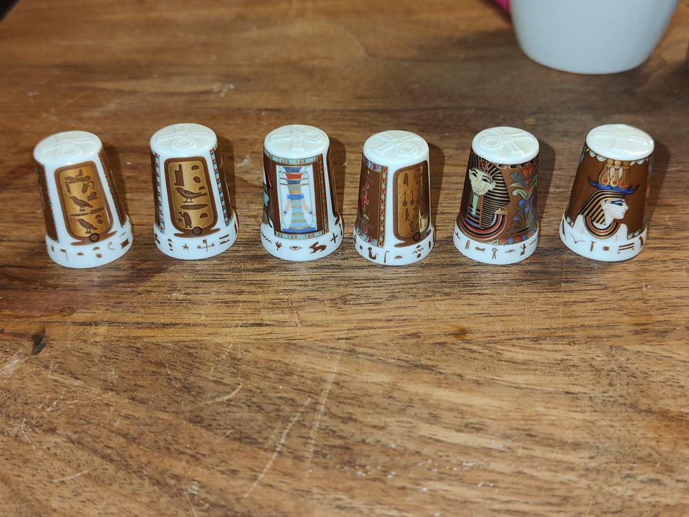 5 Fingerhüte, Alt, Aus Jet Und Cloisonné, England/Frankreich (Gebraucht