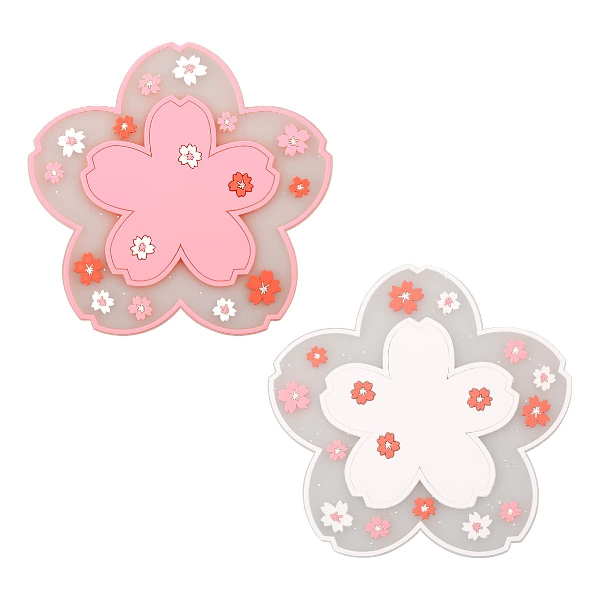 DesertBoy 6 Stück PVC Weicher Sakura Coaster Sakura Untersetzer 11,5 Cm Kirschblüten-Untersetzer PVC Sakura Untersetzer Sakura-Untersetzer Getränkeuntersetzer Sakura Für Tassen, Cafés(3 Rosa+3 Weiß