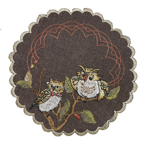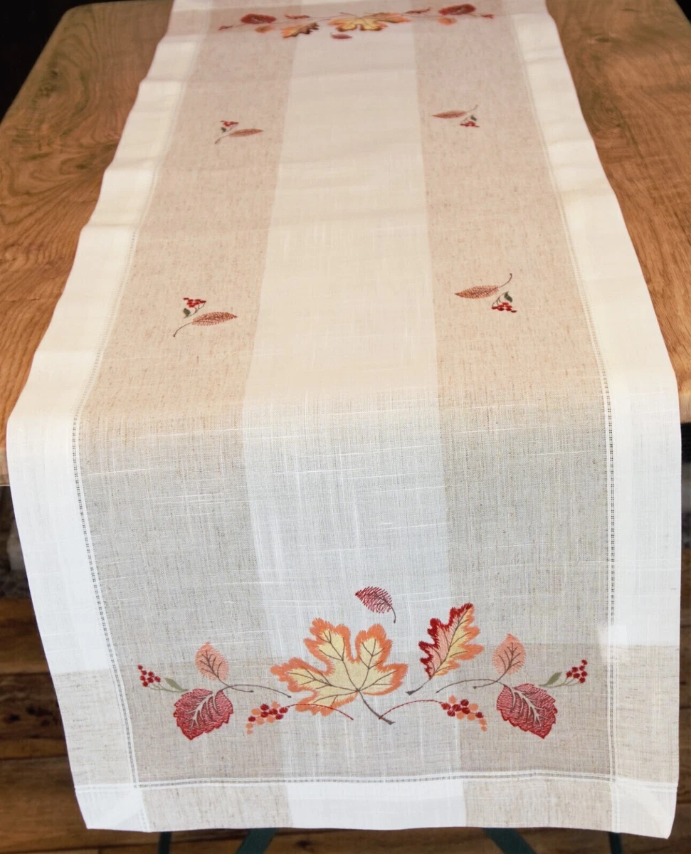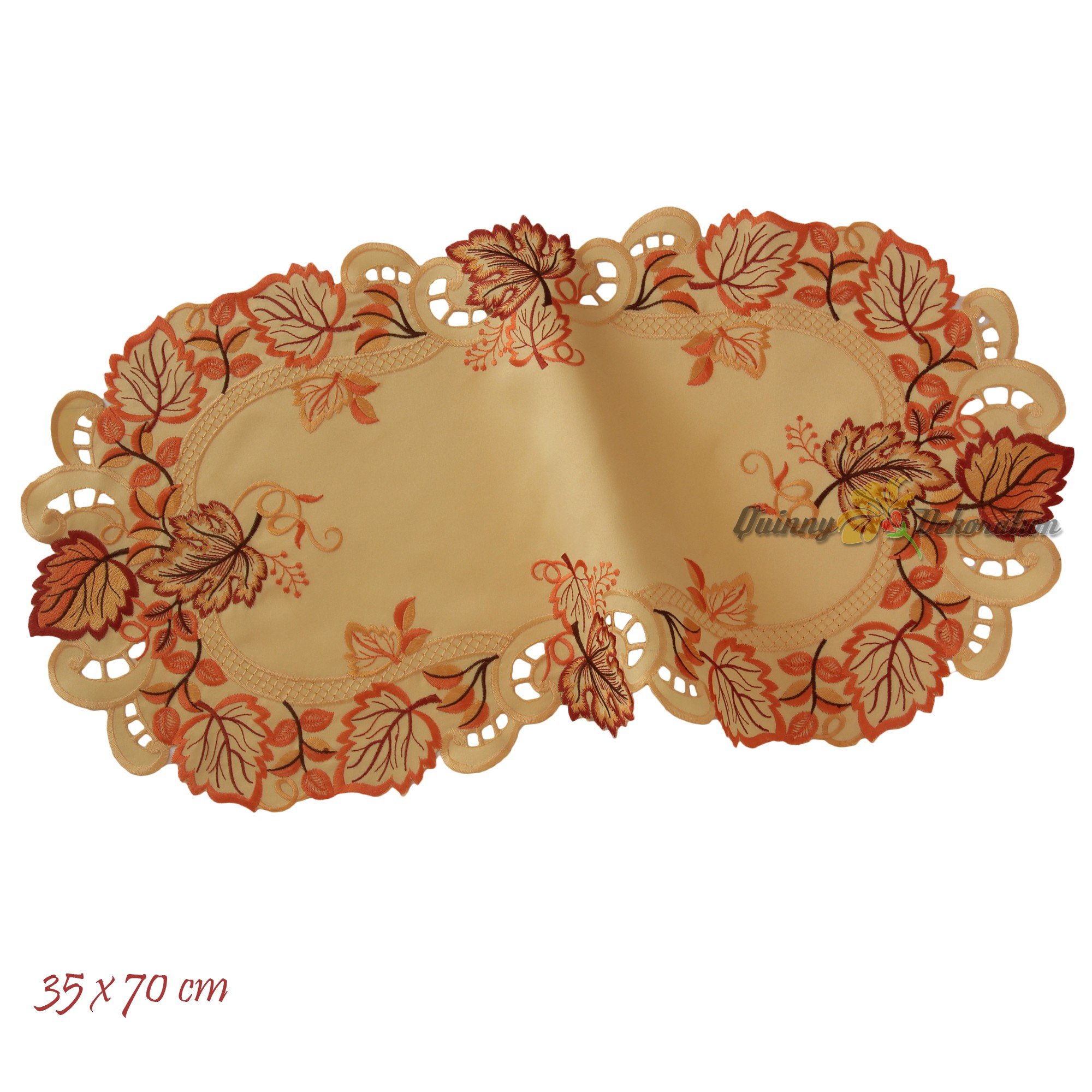 Herbst Kastanien Blätter Tischdecke Deckchen Oval Leinen-Optik Beige Gold Braun Bestickt (22x55