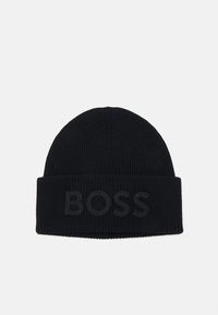 HUGO - Mütze Aus Woll-Mix Mit Rotem Logo-Aufnäher - Schwarz