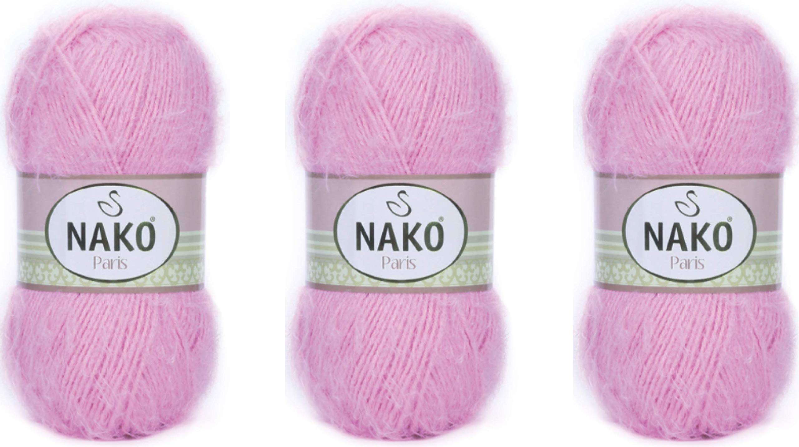 NAKO Paris, Strickgarn, Häkelgarn, Acryl-Schal, Wintermütze, Schalgarn, 3 Knäuel, 40 % Acryl, 60 % Polyamid, Je Knäuel, 100 G, 11273 Karatrot