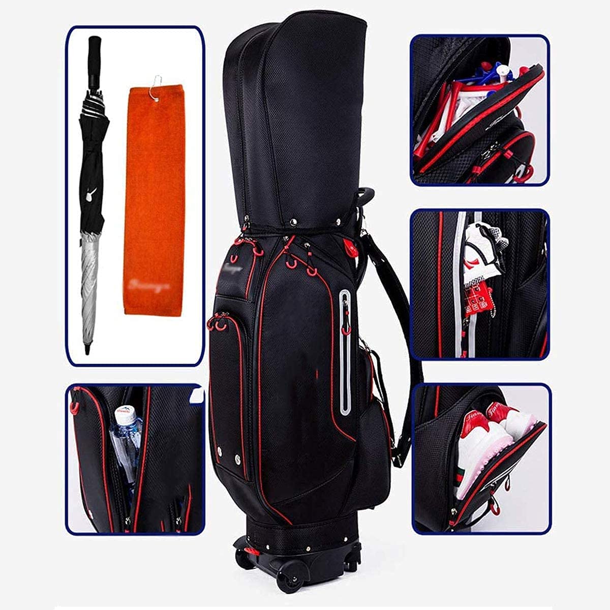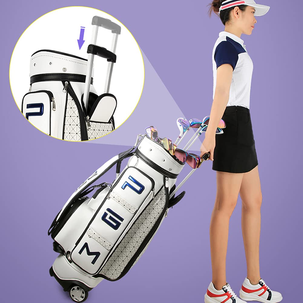 ACXZ Damen Golfbags Cartbag Mit 5-Wege-Teiler / 10 Zusätzlichen Aufbewahrungstaschen, Golf Trolley Bag Mit 2 Rädern, Wasserdichte Golf-Tragetasche, Weiß