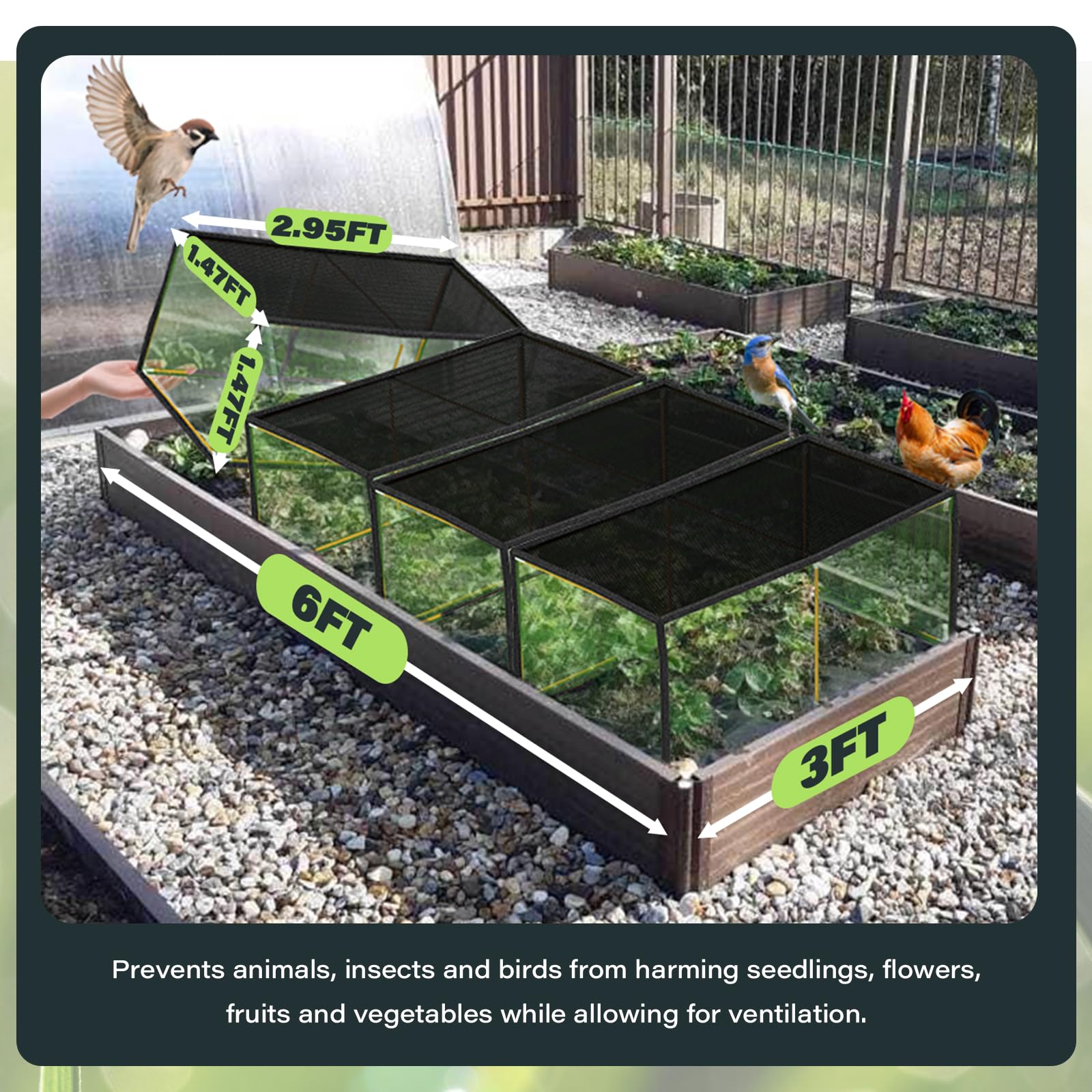 Zugangstür mit Reißverschluss: Pflanzenschutznetz mit einer großen Zugangstür mit Reißverschluss, die nach Bedarf geöffnet und geschlossen werden kann, wodurch Ihre Gartenarbeiten bequemer werden. Großes Pop up Pflanzenschutz Zelt bei kaufen | 184225 Pflanzenschutz: Dieser Pflanzkäfig verhindert, dass Vögel oder andere Kleintiere in Ihren Pflanzbereich gelangen und schützt somit Ihr Gemüse, Obst und Blumen. Das atmungsaktive Netzabdeckungsdesign unseres Pflanzkäfigs ermöglicht es Ihren Pflanzen, Sonnenlicht und Regenwasser zu genießen und gleichzeitig geschützt zu bleiben Die Gartenbettabdeckung nimmt verdickten galvanisierten Metallrohrrahmen an, um Rost zu verhindern und bietet Stabilität ohne Verformung Und es kann auch als Hühnerkäfig verwendet werden, bietet einen sonnenfesten und atmungsaktiven Unterschlupf für die Hühner. Sensible Pflanzen können im Winter oder während der Jahreszeitenwechsel bereits durch leichten Frost und kalten Wind Schaden nehmen. Ihre Pflanzen überwintern Sie daher mit geeignetem Zubehör von bestmöglich und bewahren sie auf diesem Wege vor kältebedingten Beeinträchtigungen Folientunnel Hochbeet LINSOCLE Pflanzenschutznetz Für Obstbäume, Netz Für Obstbäume Mit Reißverschluss Und Zugband Haube Für Hochbeet Maße des Gartenkäfigs: Mit einer Abmessung von 182,5 cm L x 91,9 cm B x 152,5 cm H ist diese Netzabdeckung mit Rahmen ideal für die Verwendung zusammen mit Hochbeeten. Geüseschutznetz, 3 x 6 Insektennetz, Pflanzenschutznetz...