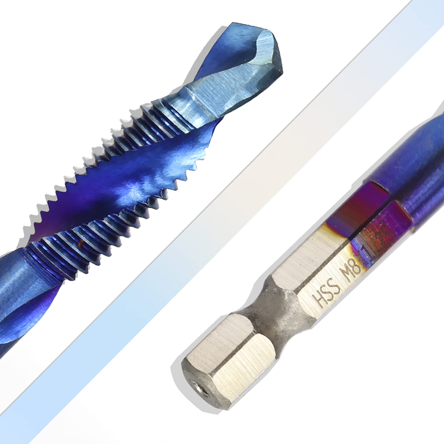 International products have separate terms, are sold from abroad and may differ from local products, including fit, age ratings, and language of product, labeling or instructions. Vielseitig einsetzbar: Ideal zum Bohren, Gewindebohren, Schneiden auf Holz, Weichmetall, Aluminiumplatten, Eisen usw. 銆怘ochwertiges Material銆� Hergestellt aus hochwertigem HSS mit Nanoblauer Beschichtung, hoher H盲rte, rostfrei, hat hervorragende F盲higkeit und Haltbarkeit. (St盲rke: < 3 mm; Hinweis: Funktioniert nicht gut mit Edelstahl 304 oder Metall mit hoher H盲rte) Metrisch: M3 x 0,5, M4 x 0,7, M5 x 0,8, M6 x 1, M8 x 1,25, M10 x 1,5., Schaft: 6,35 mm Sechskant-Schaft. Gewindebohrer-Set M10 3-teilig | Baumarkt Spezifikation: Material: Schnellarbeitsstahl (HSS 4341) Farbe: Silber. Sehr gute Kraftübertragung durch Sechskant-Schaft. Das 6er-Pack Kombi-Bohrer- und Gewindebohrer-Bit-Set – Ihre ultimative Lösung für präzises Bohren und Gewindeschneiden. Dieses HSS-Gewindebohrer-Set ist auf Langlebigkeit und Genauigkeit ausgelegt, mit titanbeschichteten Bits, die Verschleiß widerstehen Es kann zum Schneiden verschiedener Gewinde verwendet werden, wodurch Ihre Arbeit bequemer wird. Antrieb: 1/4-Sechskant, passend für Halter mit Aufnahme nach DIN ISO 1173-D 6,3.. Bohren und Gewindeschneiden spart Bearbeitungsschritte und Zeit und verbessert die Arbeitseffizienz. Einstellbar: Federbelastete automatische Stanzen werden automatisch bereitgestellt, wenn sie gegen die Oberfläche gedrückt werden Gewindeschneider Bohrer 6 Stück Bohr-und Gewindebohrer Etrisches Gewinde 3-10 Kombigewindebohrer Set