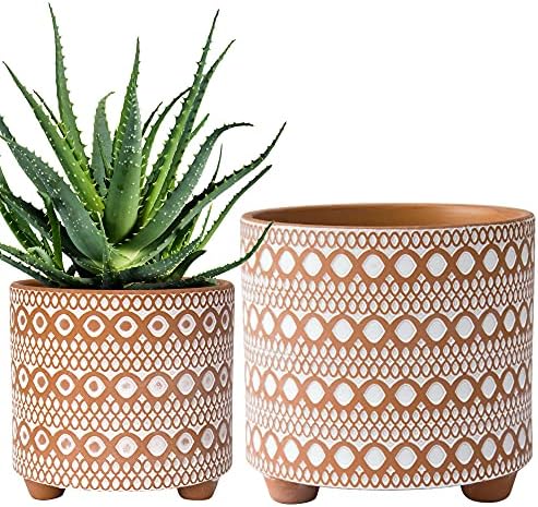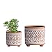 Entwässerungslöcher - Jeder Pflanztopf verfügt über ein Drainageloch, um überschüssiges Wasser abzugeben, zusammen mit einem mitgelieferten Netz-Drainageschutz und schützendem Kratzpad. Design Terrakotta-Töpfe: Handgefertigte, elegante Terrakotta-Pflanzgefäße für Zimmerpflanzen oder Sukkulenten. [Größe & Maße]Kleiner: 11,2 cm Durchmesser (9,9 cm Innendurchmesser) * 11,2 cm Höhe; Größer Elegantes handbemaltes Design: Verfügt über ein handgeätztes, sich wiederholendes Rautenmuster in Weiß über Terrakotta, das an die handwerkliche Schönheit der gewebten Körbe aus der afrikanischen Savanne erinnert – verbindet natürliche Textur mit kultureller Eleganz für eine zeitlose dekorative Note. WellHome - Set von 2 Pflanztöpfen 2,3L Bowl Sandy 23,8 cm/Stück in 【Größe & Maße】Kleiner:11., 2 cm Durchmesser (9., 9 cm Innendurchmesser) * 11., 2 cm Höhe; Größer:16., 3 cm Durchmesser (14., 5 cm Innendurchmesser) * 15., 2 cm Höhe. Vielseitiges Heimdekorstück: Ein funktionaler dekorativer Akzent für Wohnzimmer, Schlafzimmer, Büros oder Regale – verschönert moderne und minimalistische Innenräume. D'vine Dev Set Mit 2 Steingut-Pflanztöpfen, Keramiktopf Mit (Pflanzen nicht im Lieferumfang enthalten., ) Benötigte Blumenerde 10,2 cm, 0,8 qt; 15,2 cm, 2,4 qt. Abflusslöcher und Abtropfschalen: Jeder Pflanztopf wird mit einem Ablaufloch und einer Abtropfschale für kleine Wasserabflüsse geliefert