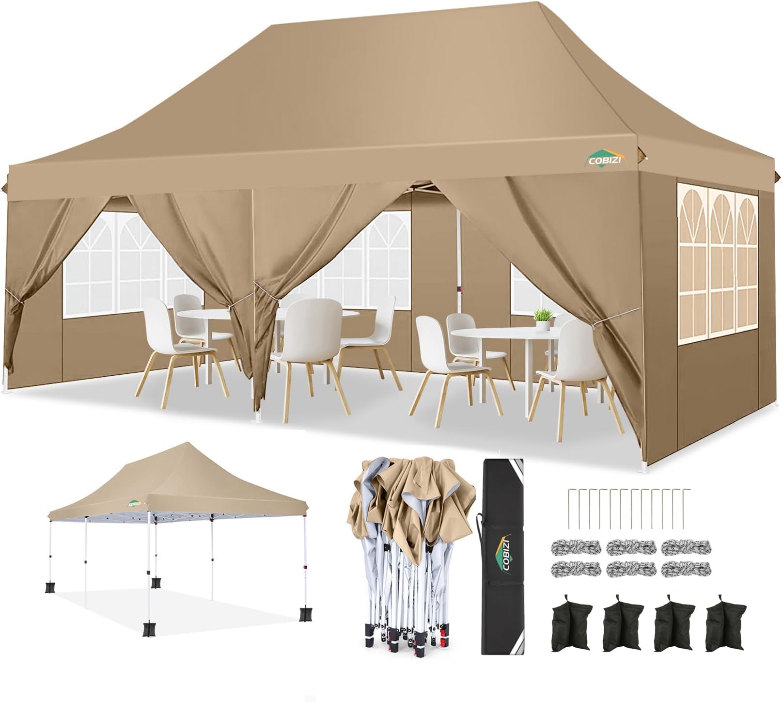 COBIZI 3 X 6 M Pop-Up-Zelt Mit 6 Abnehmbaren Seitenwänden, Outdoor