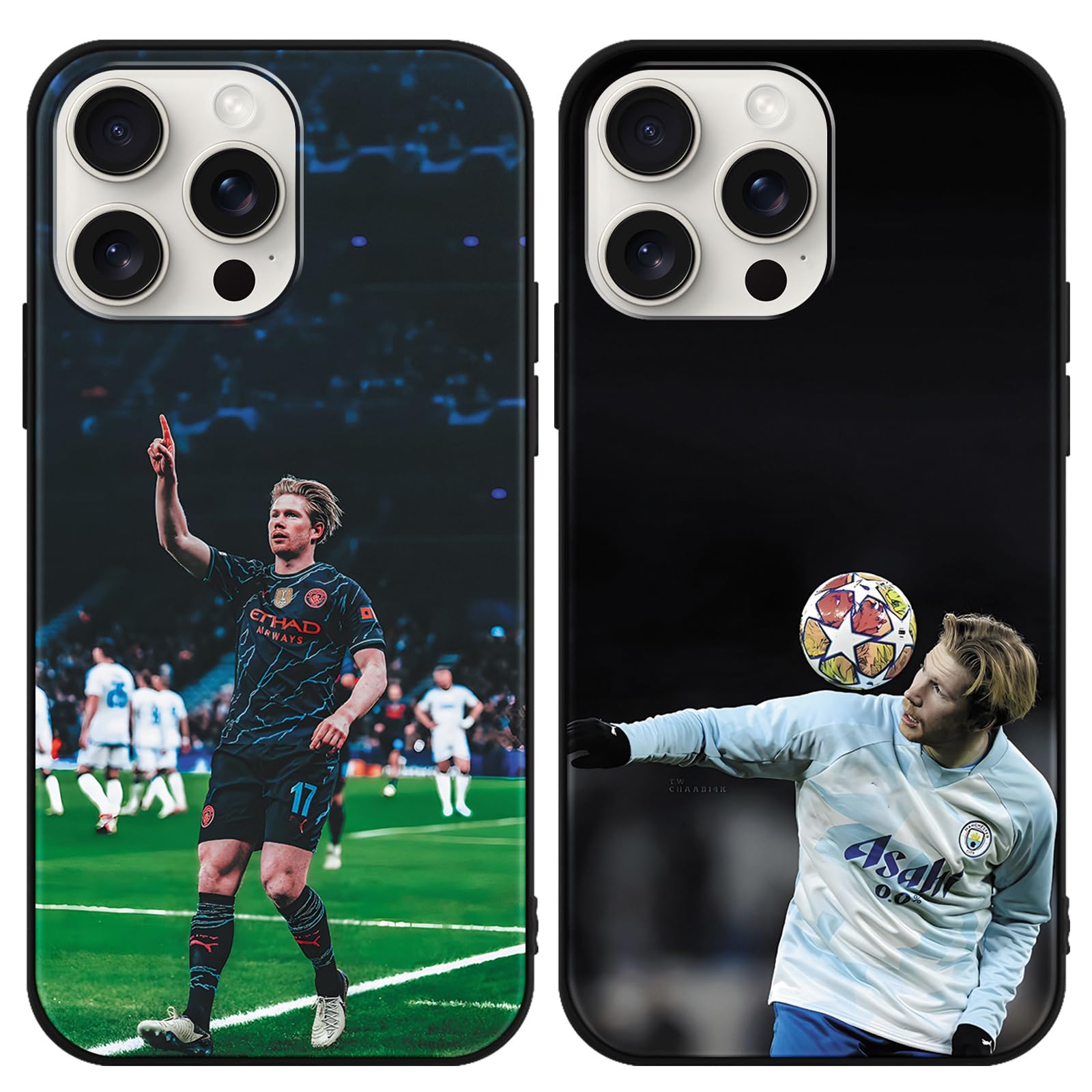 Yimctoie 2 Stück Soccer Fußball Star Schutzhülle Für IPhone 11 Pro Hülle 5,8",Cartoon Football Club Fußball-Athleten Muster Design TPU Silikon Stoßfest Handyhülle Junge Case,Black